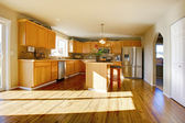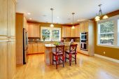 duża luksusowa i nowoczesna kuchnia drewna z blaty granitowe.