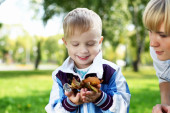 młoda matka z synem w lato park
