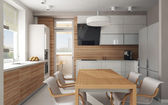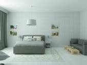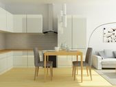 Zdjęcie "Studio flat kuchnia i pokój dzienny w jasnych kolorach szary i biały. Styl skandynawski." może być wykorzystywane do celów osobistych i komercyjnych zgodnie z warunkami zakupionej licencji Royalty-free. Obraz jest dostępny do pobrania w jakości wysokiej rozdzielczości do 5760x3840.
