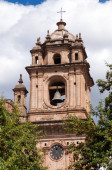 Wieża i kopuły zabytkowego Compania de la Iglesia w Cusco