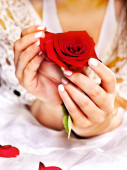 Zdjęcie "dziewczyna z różą na czerwonym tle." może być wykorzystywane do celów osobistych i komercyjnych zgodnie z warunkami zakupionej licencji Royalty-free. Obraz jest dostępny do pobrania w jakości wysokiej rozdzielczości do 5760x3840.