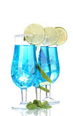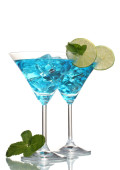koktajl w okulary martini z lodem na białym tle niebieski