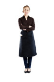 Młoda kobieta w kelner jednolitego na ciemnym tle.