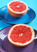 Zdjęcie "Szczelnie-do góry połówki grejpfruta na talerzu" może być wykorzystywane do celów osobistych i komercyjnych zgodnie z warunkami zakupionej licencji Royalty-free. Obraz jest dostępny do pobrania w jakości wysokiej rozdzielczości do 5760x3840.