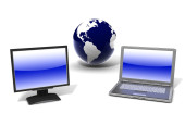 sfery laptopa i glob ilustracja koncepcja na białym tle