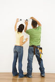 Zdjęcie "mężczyzna i kobieta pomiaru ścianie." może być wykorzystywane do celów osobistych i komercyjnych zgodnie z warunkami zakupionej licencji Royalty-free. Obraz jest dostępny do pobrania w jakości wysokiej rozdzielczości do 5760x3840.