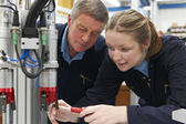 Zdjęcie "inżynier i uczennica pracująca na maszynie w fabryce" może być wykorzystywane do celów osobistych i komercyjnych zgodnie z warunkami zakupionej licencji Royalty-free. Obraz jest dostępny do pobrania w jakości wysokiej rozdzielczości do 5760x3840.
