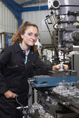 Inżynier kobieta uczeń pracuje na maszynie w fabryce