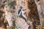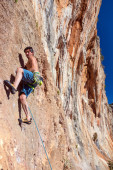 Zdjęcie "Zespół wspinaczy mężczyzna i kobieta rosnącej pomarańczowy jasny skalną ścianą z liny i narzędzi" może być wykorzystywane do celów osobistych i komercyjnych zgodnie z warunkami zakupionej licencji Royalty-free. Obraz jest dostępny do pobrania w jakości wysokiej rozdzielczości do 5760x3840.