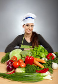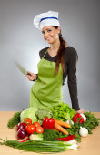 Panienka kucharz Łacińskiej z warzywami w patelni