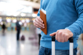Zdjęcie "Młody człowiek z paszportów i internatem przechodzi w recepcji czeka na lot na lotnisku" może być wykorzystywane do celów osobistych i komercyjnych zgodnie z warunkami zakupionej licencji Royalty-free. Obraz jest dostępny do pobrania w jakości wysokiej rozdzielczości do 5760x3840.