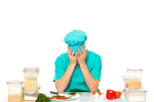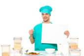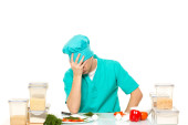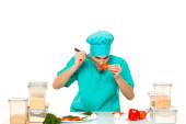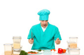 Przyjazny dla szefa kuchni przygotowanie warzyw w swojej kuchni. kocha pieprz