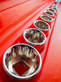 zestaw narzędzi o różnych narzędzi metalowych w czerwonym polu