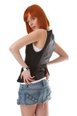 atrakcyjne redhair młode dziewczyny w Jeansowe szorty i skórzaną kurtkę
