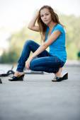 Zdjęcie "dziewczyna pozuje na postoju" może być wykorzystywane do celów osobistych i komercyjnych zgodnie z warunkami zakupionej licencji Royalty-free. Obraz jest dostępny do pobrania w jakości wysokiej rozdzielczości do 5760x3840.