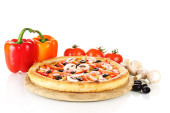 aromatyczna pizza z warzywami i grzybami na białym tle