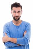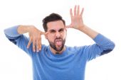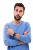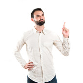 Mężczyzna wskazujący palcem