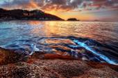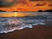 zachód słońca nad brzeg plaży oceanu
