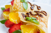 Zdjęcie "Naleśniki z truskawkami i pomarańczowy" może być wykorzystywane do celów osobistych i komercyjnych zgodnie z warunkami zakupionej licencji Royalty-free. Obraz jest dostępny do pobrania w jakości wysokiej rozdzielczości do 5760x3840.