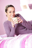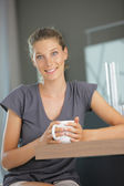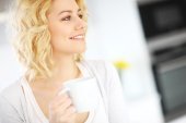 piękna młoda kobieta o kawy a w kuchni