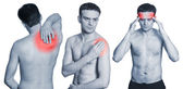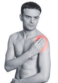 widok z tyłu młodego człowieka, trzymając ją za szyję w bólu