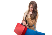 Szczęśliwa dziewczyna z torby na zakupy po