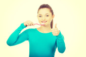 Młoda kobieta myjąca zęby.
