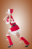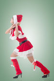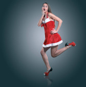 piękna dziewczyna w stroju Świętego Mikołaja z telefonu komórkowego