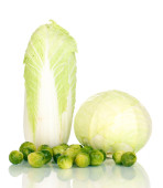 świeżej kapusty brukselskiej i zielona kapusta na białym tle