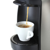 nalewanie kawy w białe filiżanka kawy espresso