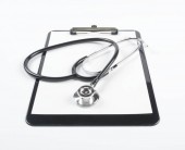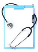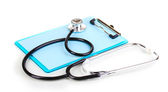 Stetoskop i pusty schowek izolowane na białym