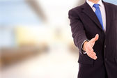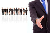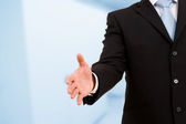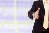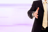 biznesmen z otwartej dłoni gotowa do uszczelnienia ofertę w ofi