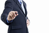 biznesmen z otwartej dłoni gotowa do uszczelnienia ofertę w ofi