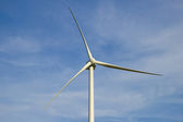 biały turbinę wytwarzającą energię elektryczną na błękitne niebo