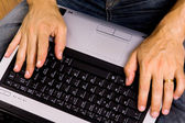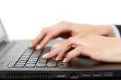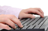 bliska secretarys dłoni dotykając klucze komputera podczas pracy