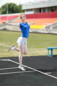 Młoda kobieta lekkoatletycznego trzymając się poziomy pasek