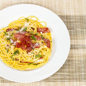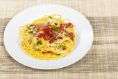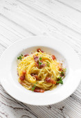 Zdjęcie "Makaron Carbonara w biały talerz." może być wykorzystywane do celów osobistych i komercyjnych zgodnie z warunkami zakupionej licencji Royalty-free. Obraz jest dostępny do pobrania w jakości wysokiej rozdzielczości do 5760x3840.