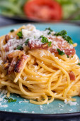 Zdjęcie "Makaron Carbonara w biały talerz." może być wykorzystywane do celów osobistych i komercyjnych zgodnie z warunkami zakupionej licencji Royalty-free. Obraz jest dostępny do pobrania w jakości wysokiej rozdzielczości do 5760x3840.