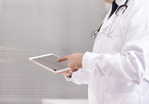 lekarz z stetoskop pisanie notatek na notatnik. Isol