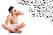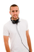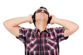zbliżenie: młody człowiek słuchania muzyki. na białym tle na biały backg