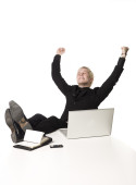 Zdjęcie "szczęśliwy człowiek z komputera." może być wykorzystywane do celów osobistych i komercyjnych zgodnie z warunkami zakupionej licencji Royalty-free. Obraz jest dostępny do pobrania w jakości wysokiej rozdzielczości do 5760x3840.
