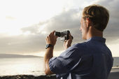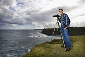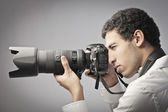fotograf poszukuje przez aparat.