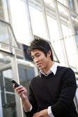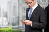biznesmen sprawdzania wiadomości na telefon komórkowy