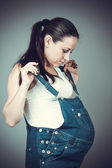 kobieta w ciąży ćwiczenia gimnastyczne piłkę. piękne ciężar