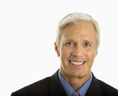 Mężczyzna się uśmiecha.