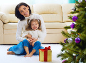 Portret rodziny Bożego Narodzenia w domu wakacje pokój dzienny