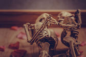 Szkielet trzymając rękę na wiecznej miłości. Selektywna skupić się na strony
