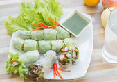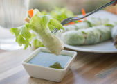 Świeży makaron warzywo wiosna roll z pikantnym sosem, dieta jedzenie