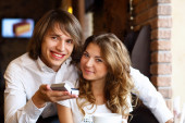 Zdjęcie "Młoda para z pierścionek zaręczynowy w restauracji" może być wykorzystywane do celów osobistych i komercyjnych zgodnie z warunkami zakupionej licencji Royalty-free. Obraz jest dostępny do pobrania w jakości wysokiej rozdzielczości do 5760x3840.