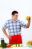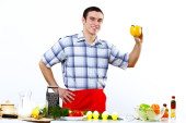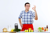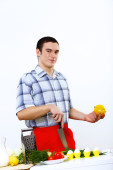 człowiek gotowania świeżego posiłku w domu